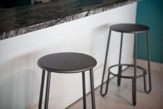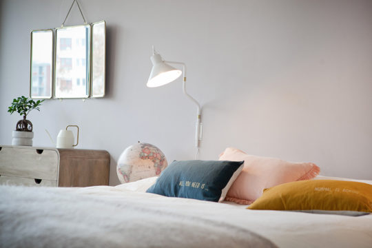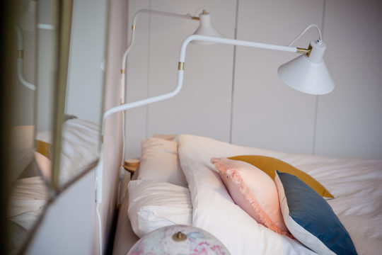 Alors, après avoir négocié la mise en couleur de quelques murs, on s’est concentré sur une recherche de mobiliers, éclairages et textiles qui nous ont permis de créer une atmosphère joyeuse, intime et apaisante.