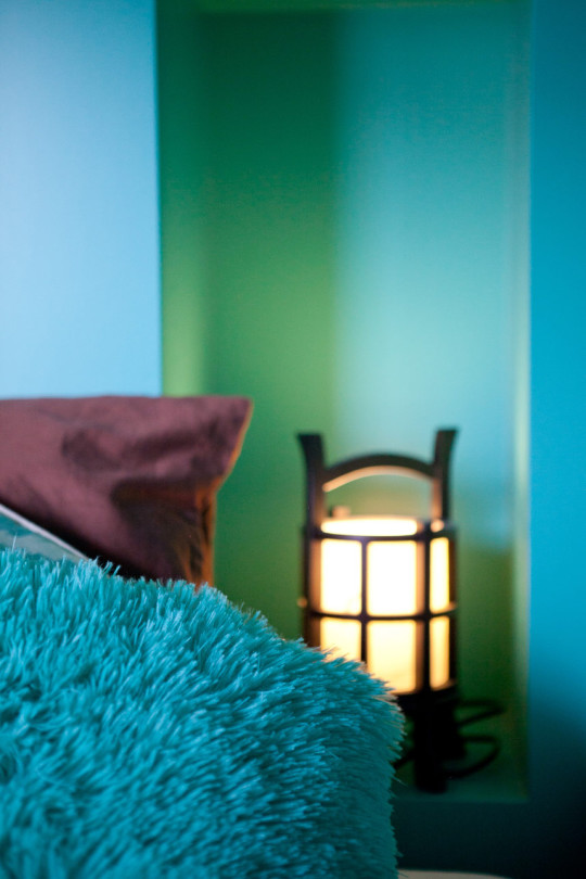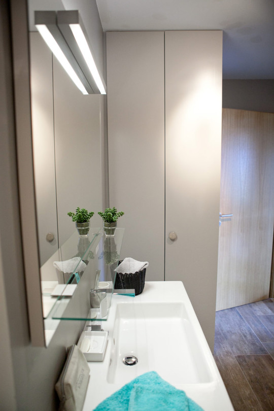 2 nuances de bleus polaires s’invitent dans les niches pour souligner l’espace de chacun.