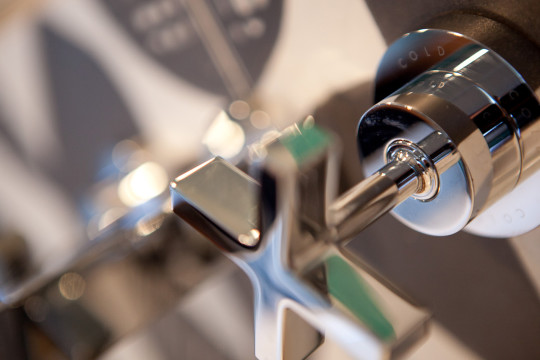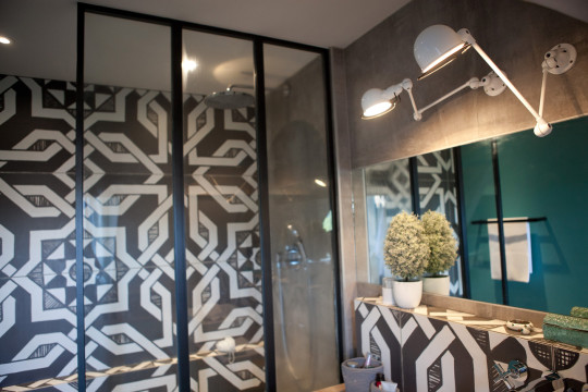 La paroi de douche a été pensé comme une verrière atelier, réalisée dans un verre anti-calcaire.