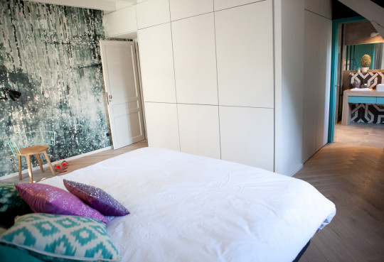 Dans cet univers feutré de suite parentale, s’invitent fantaisie et mélange de style pour un cocon très personnel, à l’image des propriétaires.