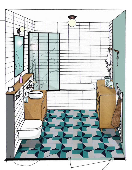 Dans la chambre: Papier peint « Oasis » de chez Au fil des couleurs.